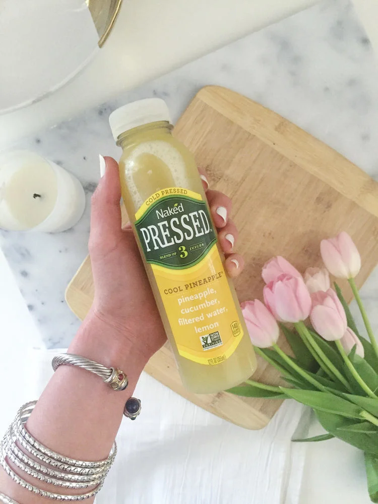 A Juice. Right now I'm loving NAKED's New Cold Pressed Juices. Found them at VONS.